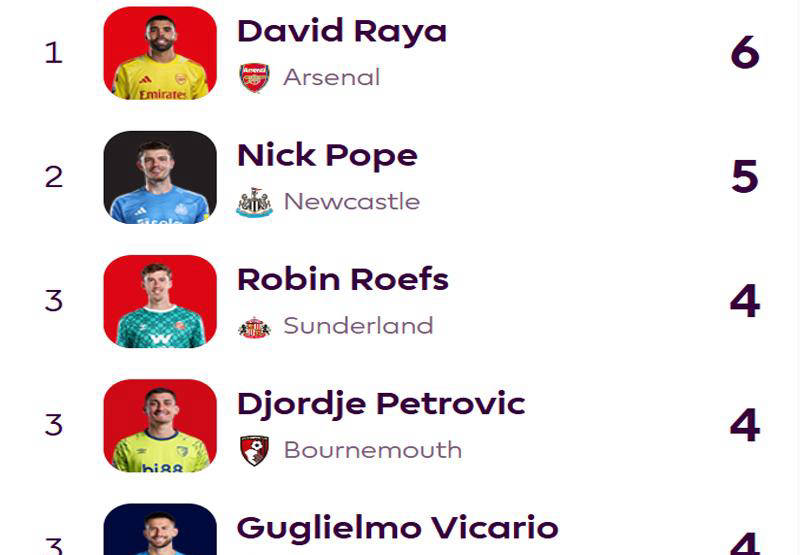 在本赛季的13场比赛中,阿森纳仅丢掉3球,分别是在对阵利物浦、曼城和纽卡斯尔时失利。可以看出,只要保持防守稳定,他们几乎可以确保获胜。在英超零封数据统计中,阿森纳门将拉亚以6次零失球领先,暂时排在第一,领先第二名纽卡斯尔的波普。